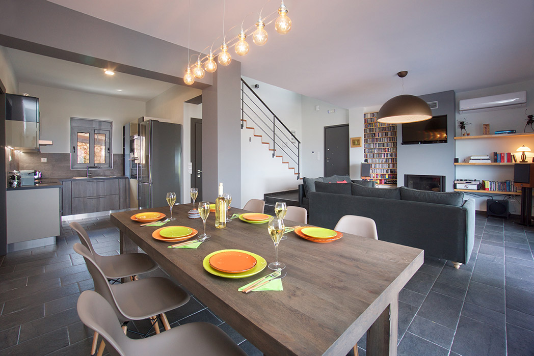 The careful configuration of the internal and external areas of the villa and the modern household equipment, offer visitors countless hours of relaxation and serenity during their summer holiday. It is a newly built (completed in May 2017) seaside complex of 2 smartly designed detached houses that can be rented as one or separately.