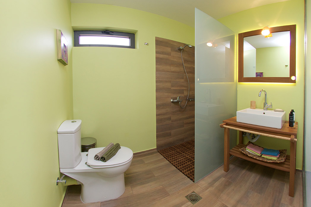 1 double bedroom with private bathroom. Bed base has mechanism for head and foot rise, whether you want to elevate your upper body, or enjoy full-body ergonomic positions all controlled by wireless remote, for complete comfort while you read, use your laptop sleeping or just relax watching the sea view.